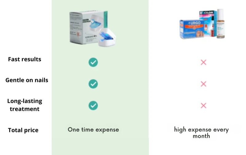 Ao contrário dos tratamentos convencionais, o nosso aparelho visa o fungo em profundidade para uma cura acelerada e duradoura.